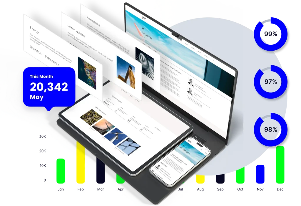 For our work with HFW, we reimagined a global digital platform that reflects their authority in shipping, commodities and aerospace. Delivered on WordPress with CRM integration, mobile-first UX, and sector-focused SEO, their new digital presence drives international visibility, absolute usability, and scalable growth across markets.
